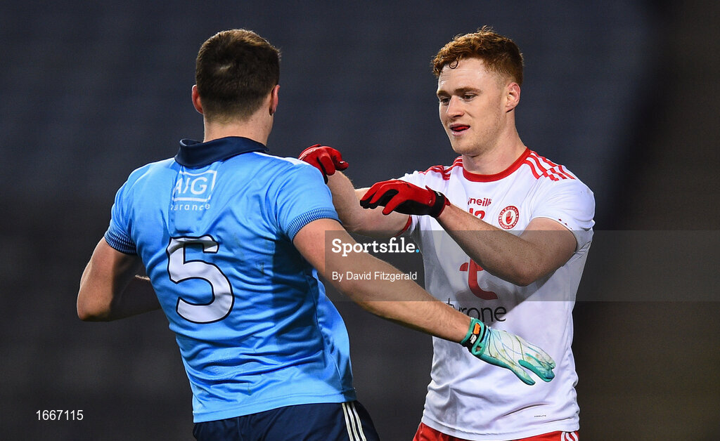 16 March 2019; Conor Meyler of Tyrone in action against Brian Howard of Dublin during the Allianz Football League Division 1 Round 6 match between Dublin and Tyrone at Croke Park in Dublin. Photo by David Fitzgerald/Sportsfile