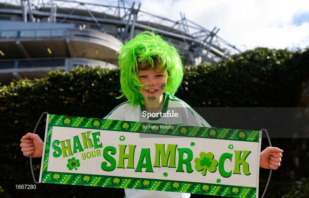 17 March 2019; Henry Shefflin, son of Ballyhale Shamrocks manager Henry Shefflin, shows his support prior to the AIB GAA Hurling All-Ireland Senior Club Championship Final match between Ballyhale Shamrocks and St Thomas at Croke Park in Dublin. Photo by Harry Murphy/Sportsfile