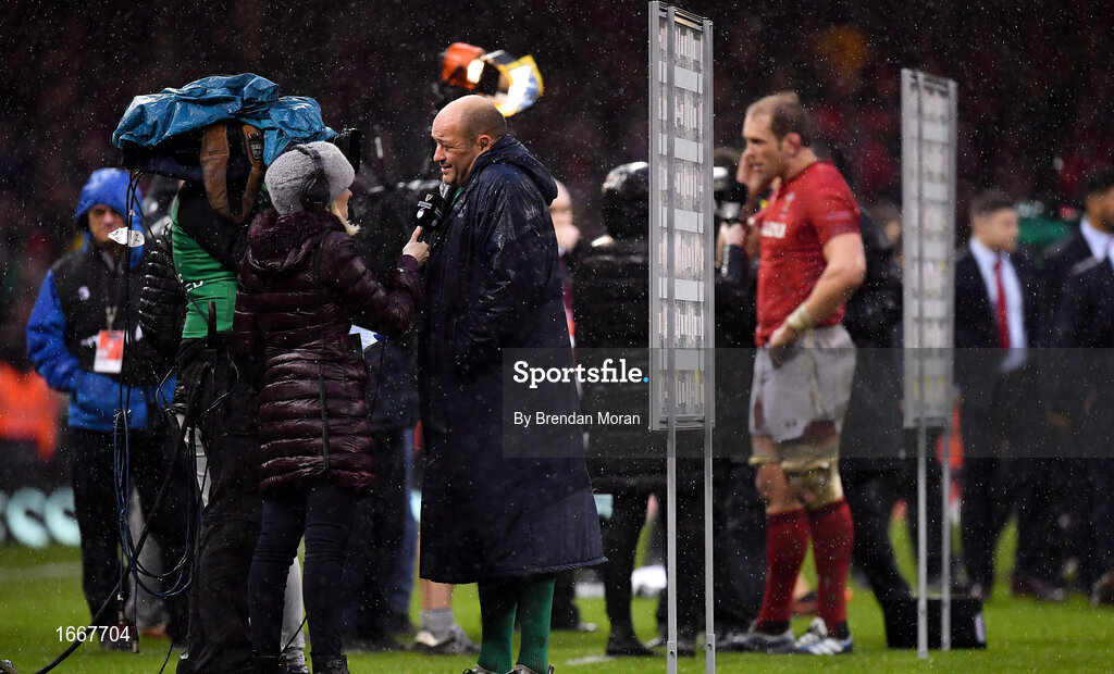 16 March 2019; Ireland captain Rory Best and Wales captain Alun Wyn Jones are interviewed by television after the Guinness Six Nations Rugby Championship match between Wales and Ireland at the Principality Stadium in Cardiff, Wales. Photo by Brendan Moran/Sportsfile