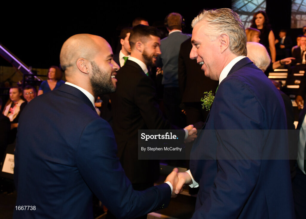 17 March 2019; Darren Randolph of Republic of Ireland, left, and John Delaney, CEO, Football Association of Ireland, at the Three FAI International Awards at RTE Studios in Donnybrook, Dublin. Photo by Stephen McCarthy/Sportsfile