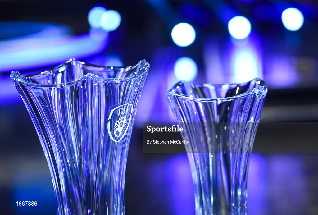 17 March 2019; Awards on display during the Three FAI International Awards at RTE Studios in Donnybrook, Dublin. Photo by Stephen McCarthy/Sportsfile