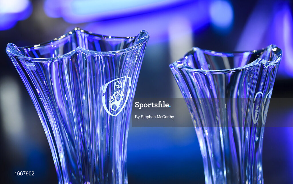 17 March 2019; Awards on display during the Three FAI International Awards at RTE Studios in Donnybrook, Dublin. Photo by Stephen McCarthy/Sportsfile