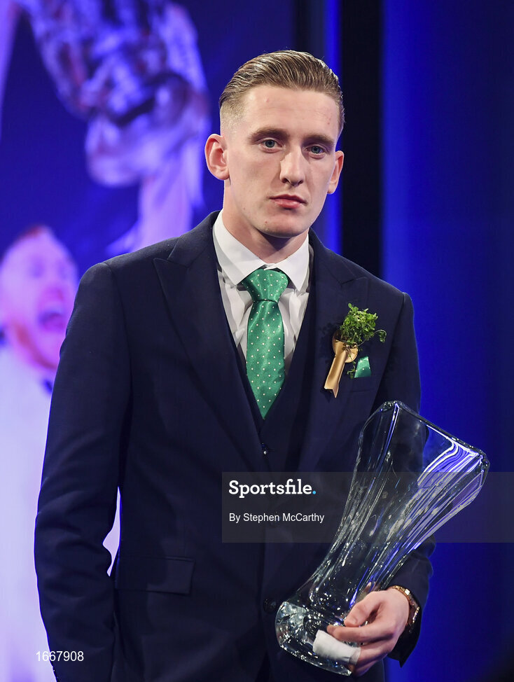 17 March 2019; Men's U21 International Player of the Year award recipient Ronan Curtis during the Three FAI International Awards at RTE Studios in Donnybrook, Dublin. Photo by Stephen McCarthy/Sportsfile