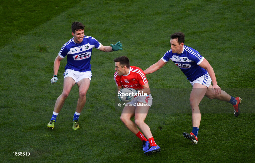 2 February 2019; Andy McDonnell of Louth in action against David Seale, left, and Adam Campion of Laois during the Allianz Football League Division 3 Round 2 match between Laois and Louth at Croke Park in Dublin. Photo by Piaras Ó Mídheach/Sportsfile