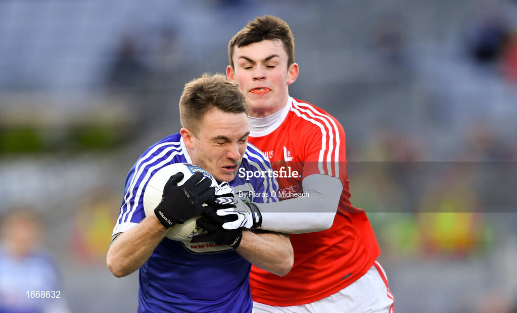 2 February 2019; Ross Munnelly of Laois in action against Dan Corcoran of Louth during the Allianz Football League Division 3 Round 2 match between Laois and Louth at Croke Park in Dublin. Photo by Piaras Ó Mídheach/Sportsfile
