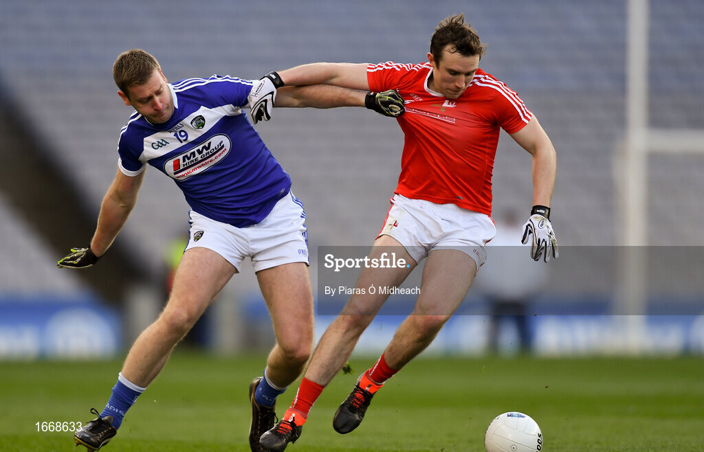 2 February 2019; Bevan Duffy of Louth in action against Donal Kingston of Laois during the Allianz Football League Division 3 Round 2 match between Laois and Louth at Croke Park in Dublin. Photo by Piaras Ó Mídheach/Sportsfile