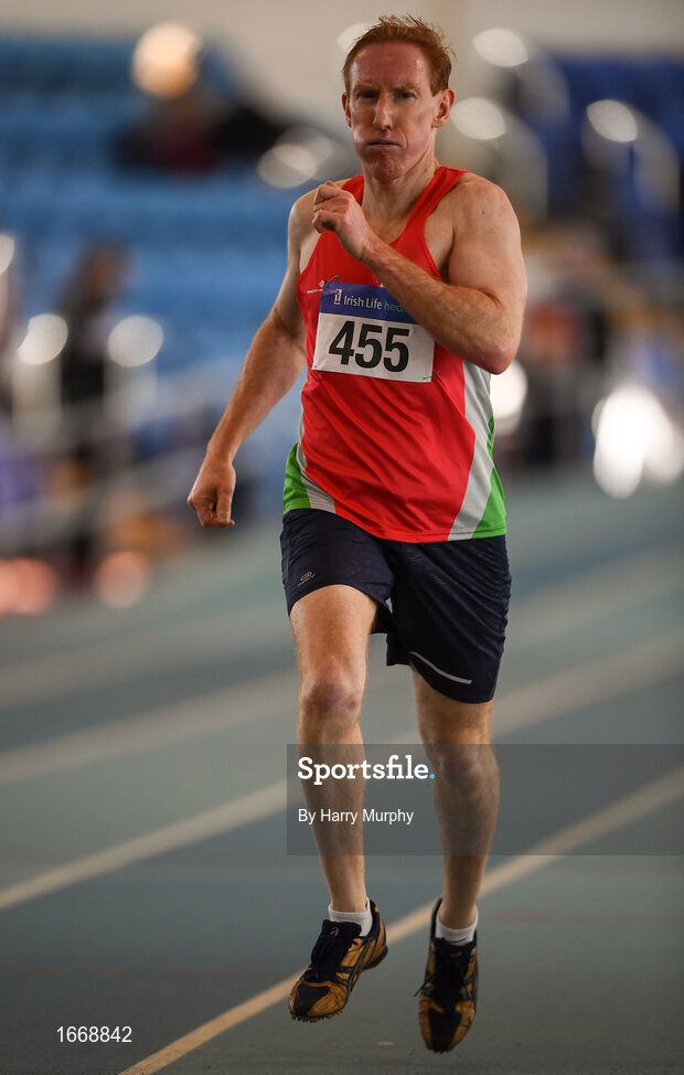 10 March 2019; Robert Bruce-Brand of City of Lisburn A.C. competing in the 800m during the Irish Life Health Masters Indoors Championships at AIT in Athlone, Co Westmeath. Photo by Harry Murphy/Sportsfile