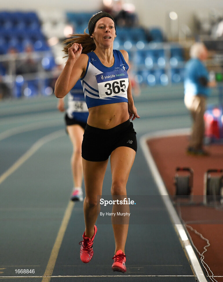 10 March 2019; Maria Dunne of St. L. O'Toole A.C. competing in the 800m during the Irish Life Health Masters Indoors Championships at AIT in Athlone, Co Westmeath. Photo by Harry Murphy/Sportsfile
