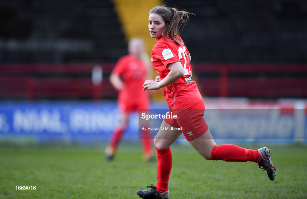 16 March 2019; Chloe Mustaki of Shelbourne during the Só Hotels Women's National League match between Shelbourne and Limerick at Tolka Park in Dublin. Photo by Piaras Ó Mídheach/Sportsfile