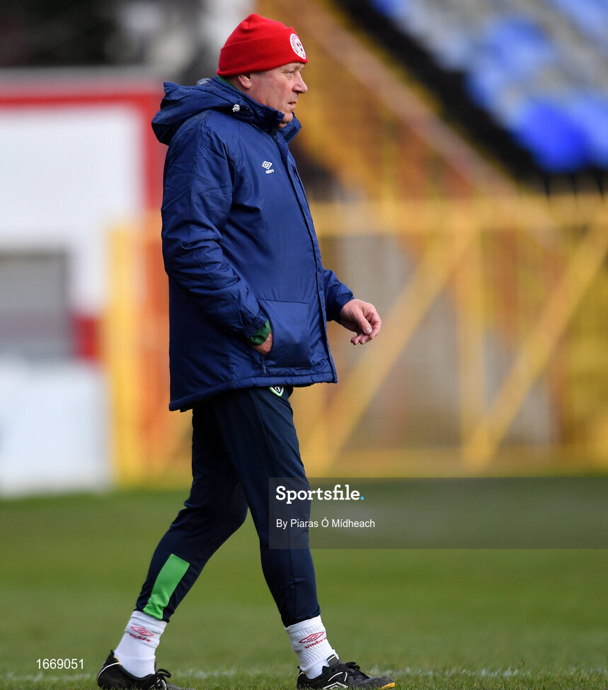 16 March 2019; Shelbourne manager Dave Bell at half-time during the Só Hotels Women's National League match between Shelbourne and Limerick at Tolka Park in Dublin. Photo by Piaras Ó Mídheach/Sportsfile