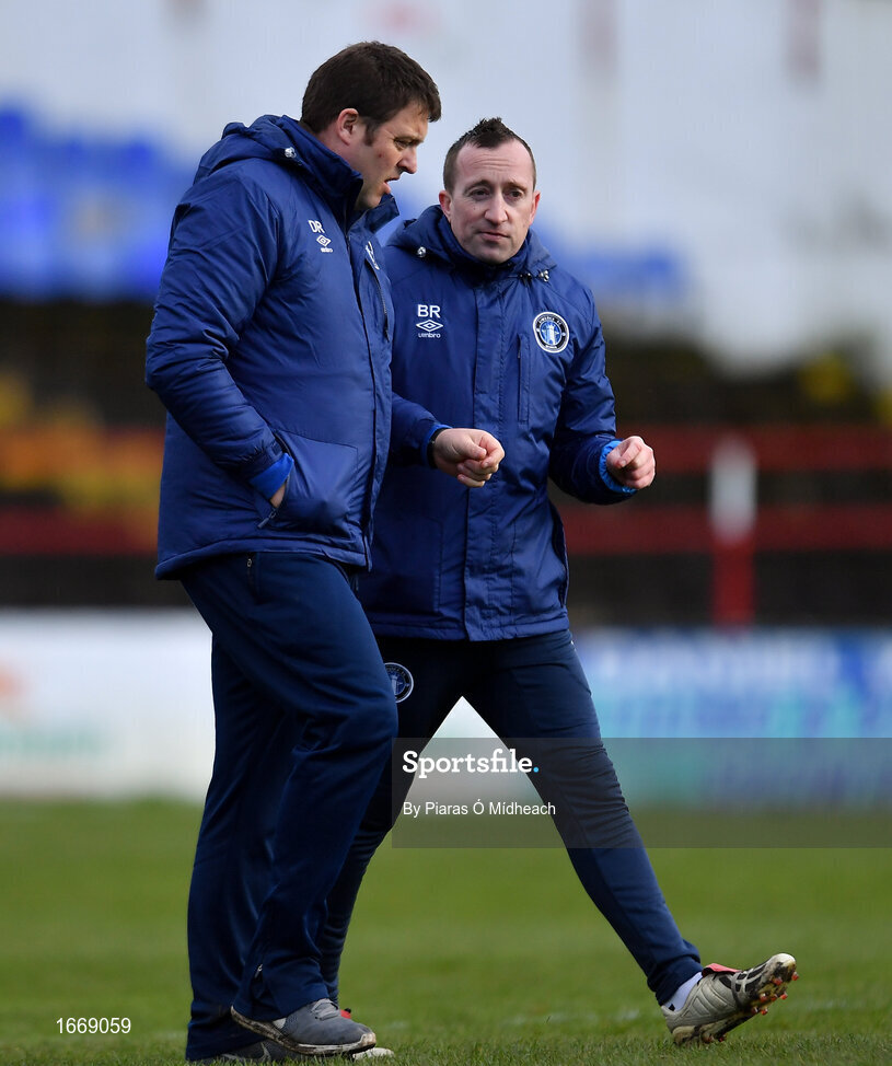 16 March 2019; Limerick manager Dave Rooney, left, with coach Barry Ryan at half-time during the Só Hotels Women's National League match between Shelbourne and Limerick at Tolka Park in Dublin. Photo by Piaras Ó Mídheach/Sportsfile