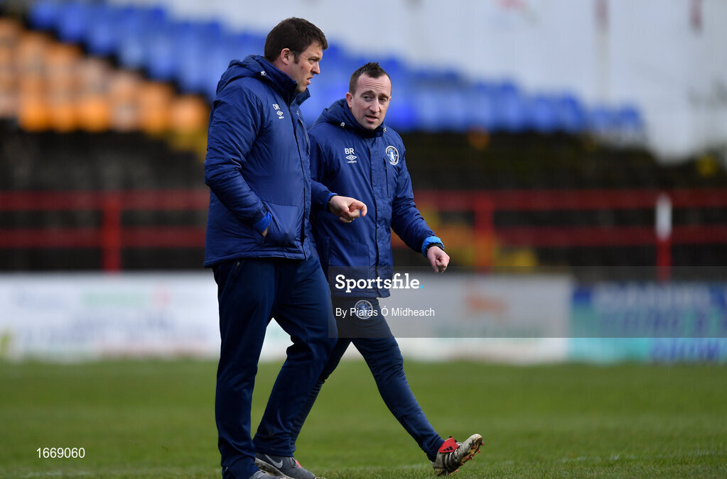 16 March 2019; Limerick manager Dave Rooney, left, with coach Barry Ryan at half-time during the Só Hotels Women's National League match between Shelbourne and Limerick at Tolka Park in Dublin. Photo by Piaras Ó Mídheach/Sportsfile
