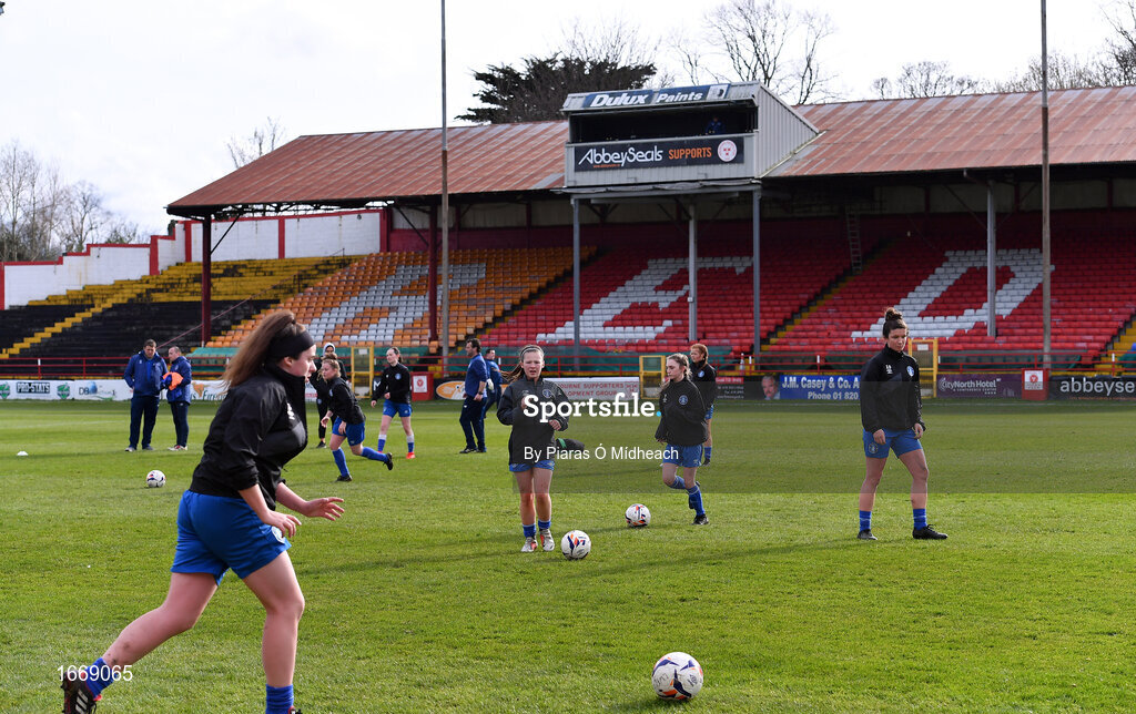 16 March 2019; Limerick players during the warm-up before the Só Hotels Women's National League match between Shelbourne and Limerick at Tolka Park in Dublin. Photo by Piaras Ó Mídheach/Sportsfile