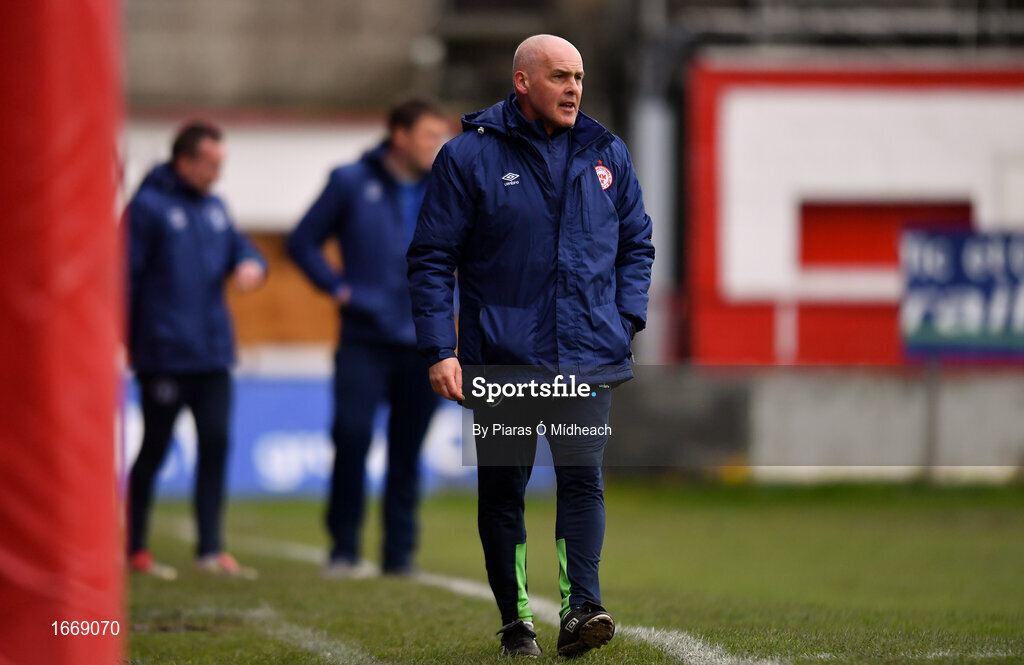 16 March 2019; Shelbourne coach Pat Behan during the Só Hotels Women's National League match between Shelbourne and Limerick at Tolka Park in Dublin. Photo by Piaras Ó Mídheach/Sportsfile
