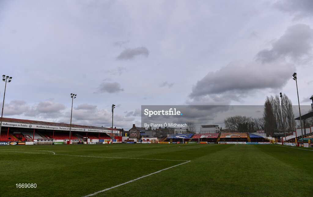 16 March 2019; A general view of Tolka Park at the Só Hotels Women's National League match between Shelbourne and Limerick at Tolka Park in Dublin. Photo by Piaras Ó Mídheach/Sportsfile