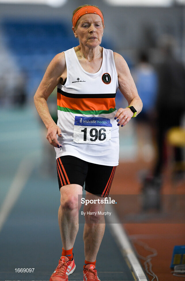 10 March 2019; Marion Lyons of St. Finbarrs A.C. competing in the 1500m during the Irish Life Health Masters Indoors Championships at AIT in Athlone, Co Westmeath. Photo by Harry Murphy/Sportsfile