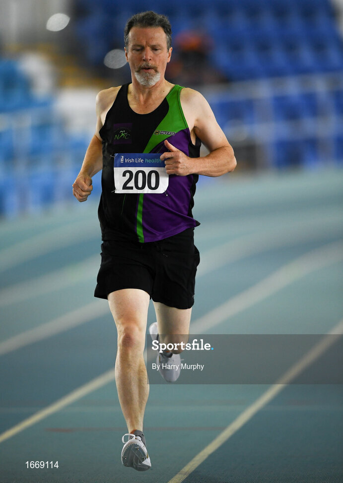 10 March 2019; Barry Maguire of Navan A.C. competing in the 60m during the Irish Life Health Masters Indoors Championships at AIT in Athlone, Co Westmeath. Photo by Harry Murphy/Sportsfile