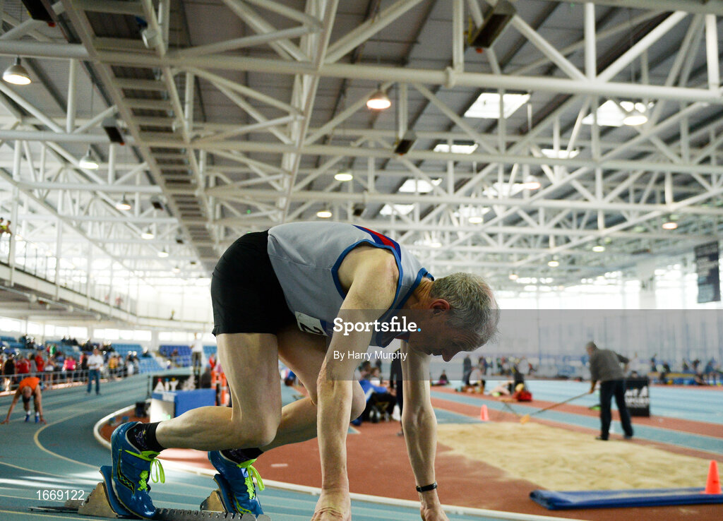 10 March 2019; Peadar McGing of Dundrum South Dublin A.C. prepares to run in the 400m during the Irish Life Health Masters Indoors Championships at AIT in Athlone, Co Westmeath. Photo by Harry Murphy/Sportsfile