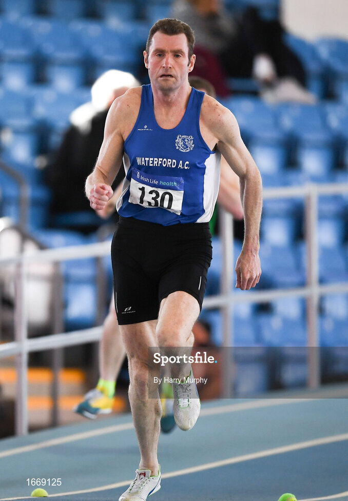 10 March 2019; Paschall Halley of Waterford A.C. competing in the 400m during the Irish Life Health Masters Indoors Championships at AIT in Athlone, Co Westmeath. Photo by Harry Murphy/Sportsfile