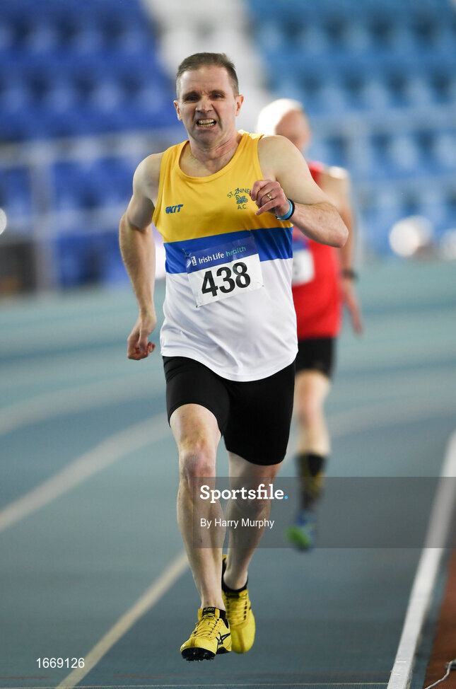 10 March 2019; Patrick Crossan of St. Annes A.C. competing in the 400m during the Irish Life Health Masters Indoors Championships at AIT in Athlone, Co Westmeath. Photo by Harry Murphy/Sportsfile