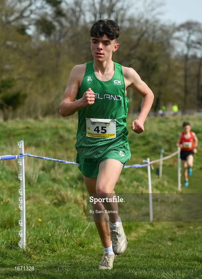 23 March 2019; Declan O'Meara of Gaelcholaiste An Phiorsigh, Co.Dublin, Ireland, competing in the Junior Boys event during the SIAB Schools Cross Country International at Santry Demense in Santry, Dublin. Photo by Sam Barnes/Sportsfile