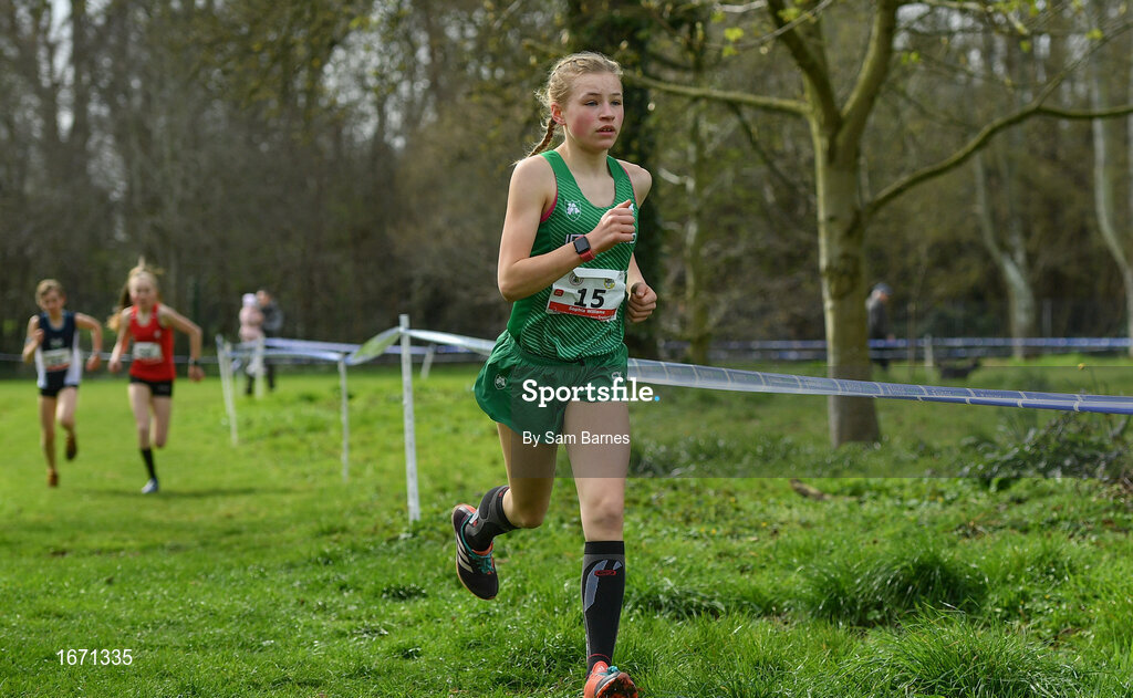 23 March 2019; Sophia Williams of Enniskillen Royal Grammer School, Co.Fermanagh, Ireland, competing in the Junior Girls event during the SIAB Schools Cross Country International at Santry Demense in Santry, Dublin. Photo by Sam Barnes/Sportsfile