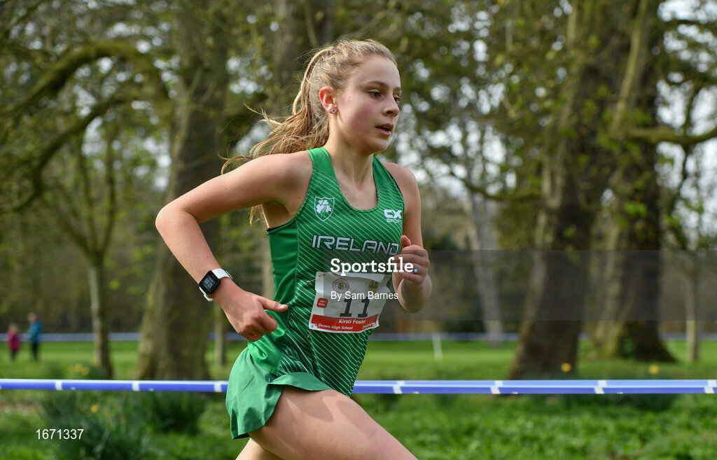 23 March 2019; Kirsti Foster of Down High School, Co.Down, Ireland, competing in the Junior Girls event during the SIAB Schools Cross Country International at Santry Demense in Santry, Dublin. Photo by Sam Barnes/Sportsfile