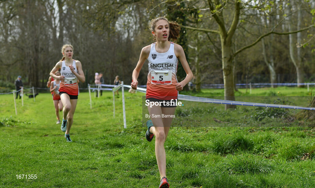 23 March 2019; Olivia Martin of Oxford High School, Oxfordshire, England, competing in the Junior Girls event during the SIAB Schools Cross Country International at Santry Demense in Santry, Dublin. Photo by Sam Barnes/Sportsfile