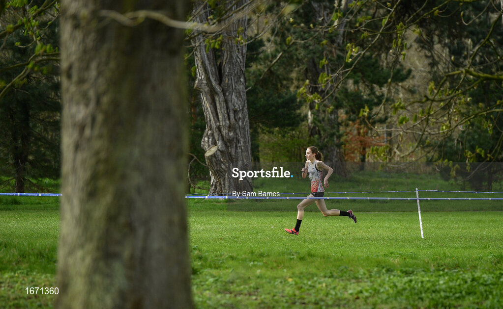 23 March 2019; Holly Weedall of Weaverham High School, Cheshire, England, on her way to winning the Junior Girls event during the SIAB Schools Cross Country International at Santry Demense in Santry, Dublin. Photo by Sam Barnes/Sportsfile