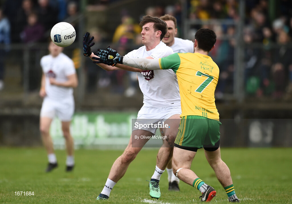 24 March 2019; Cian O'Donoghue of Kildare in action against Ryan McHugh of Donegal during the Allianz Football League Division 2 Round 7 match between Donegal and Kildare at Fr. Tierney Park in Ballyshannon, Donegal. Photo by Oliver McVeigh/Sportsfile