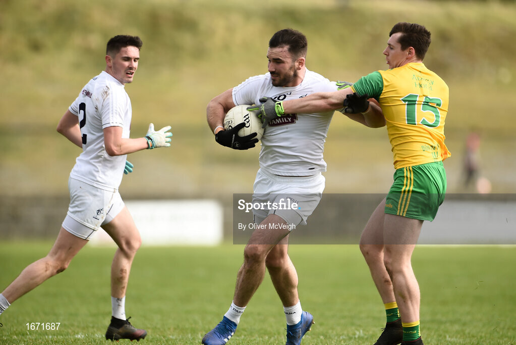 24 March 2019; Fergal Conway of Kildare in action against Jamie Brennan of Donegal during the Allianz Football League Division 2 Round 7 match between Donegal and Kildare at Fr. Tierney Park in Ballyshannon, Donegal. Photo by Oliver McVeigh/Sportsfile