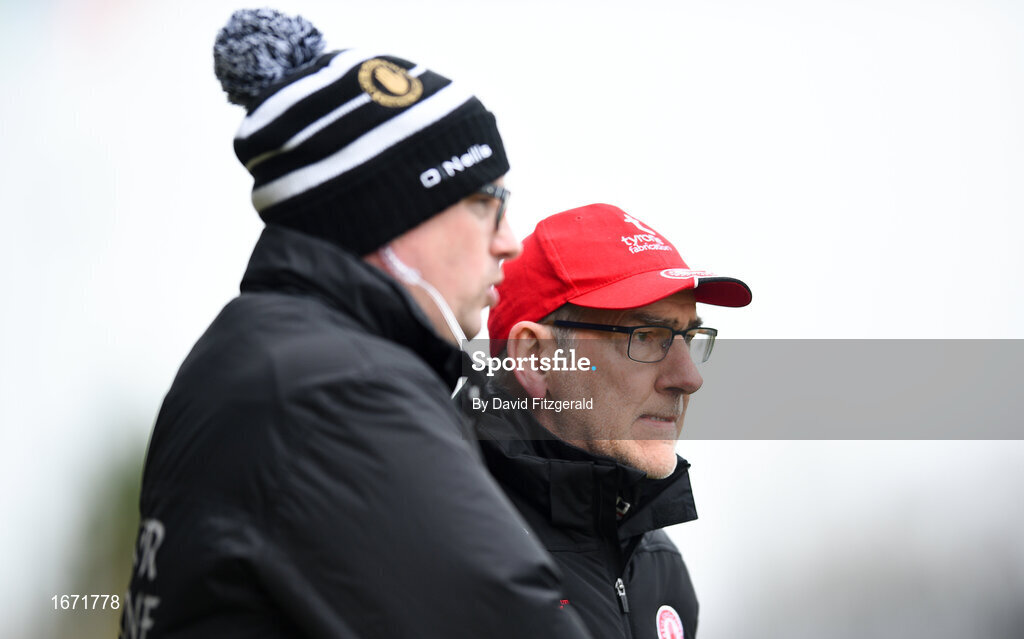 24 March 2019; Tyrone manager Mickey Harte, right, and assistant manager Gavin Devlin during the Allianz Football League Division 1 Round 7 match between Tyrone and Galway at Healy Park in Omagh. Photo by David Fitzgerald/Sportsfile