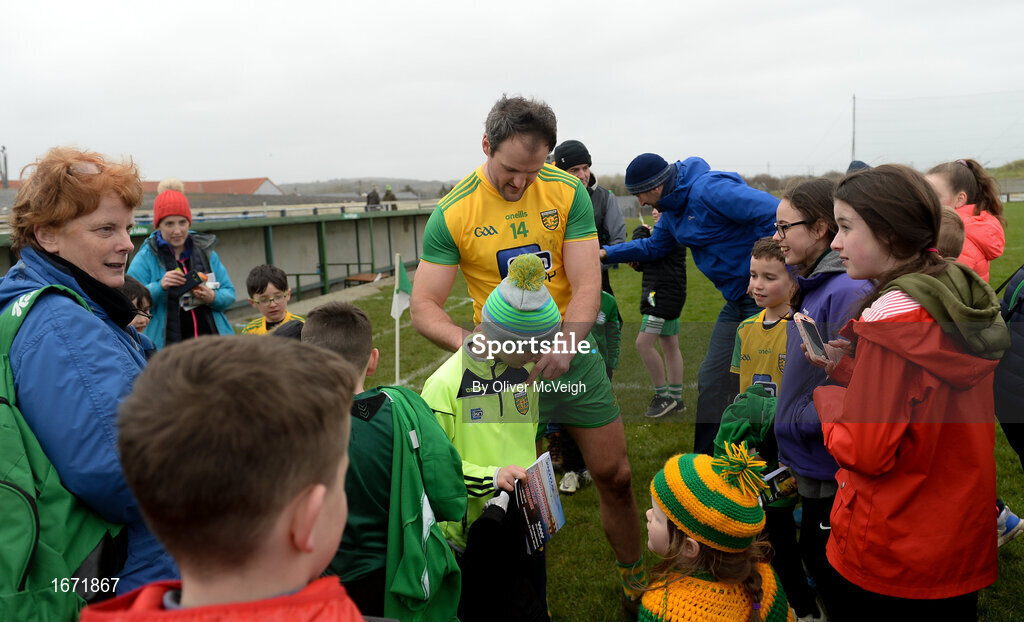 24 March 2019; Michael Murphy of Donegal signing autographs after the Allianz Football League Division 2 Round 7 match between Donegal and Kildare at Fr. Tierney Park in Ballyshannon, Donegal. Photo by Oliver McVeigh/Sportsfile