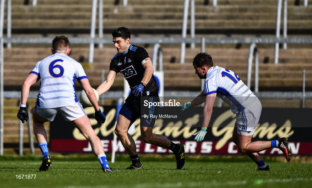 24 March 2019; Bernard Brogan, who came on as a late substitute for Dublin, is tackled by Stephen Murray, 6, and Niall Murray of Cavan during the Allianz Football League Division 1 Round 7 match between Cavan and Dublin at Kingspan Breffni in Cavan. Photo by Ray McManus/Sportsfile