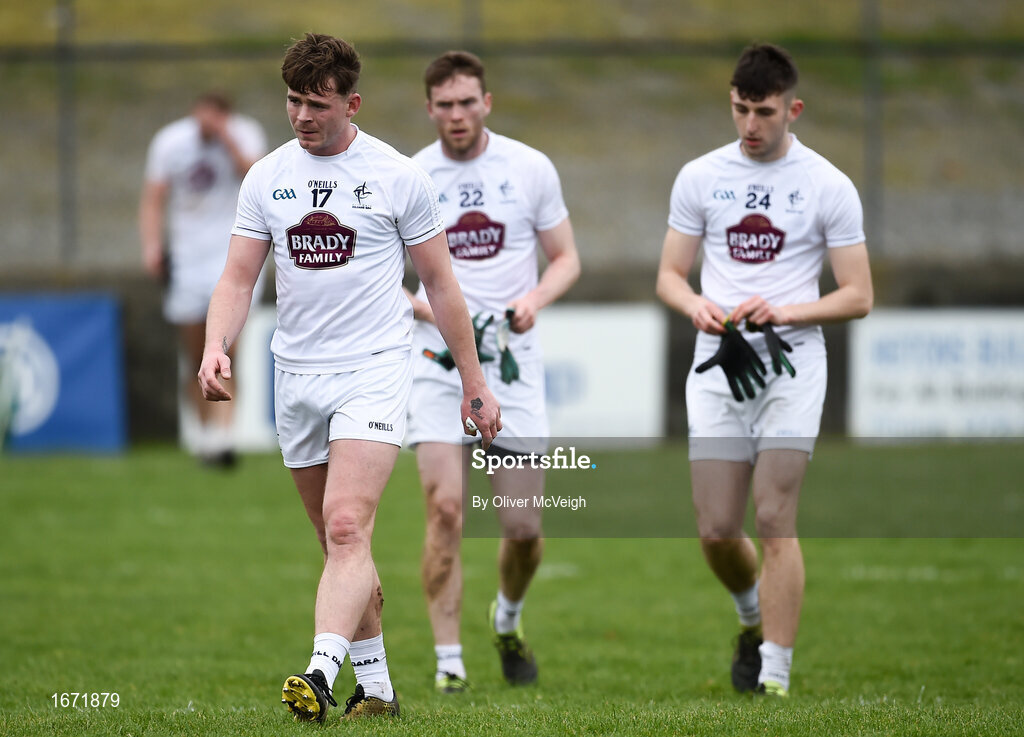 24 March 2019; Adam Tyrel, James Murray and Mark Barrett of Kildare come off the field after the Allianz Football League Division 2 Round 7 match between Donegal and Kildare at Fr. Tierney Park in Ballyshannon, Donegal. Photo by Oliver McVeigh/Sportsfile