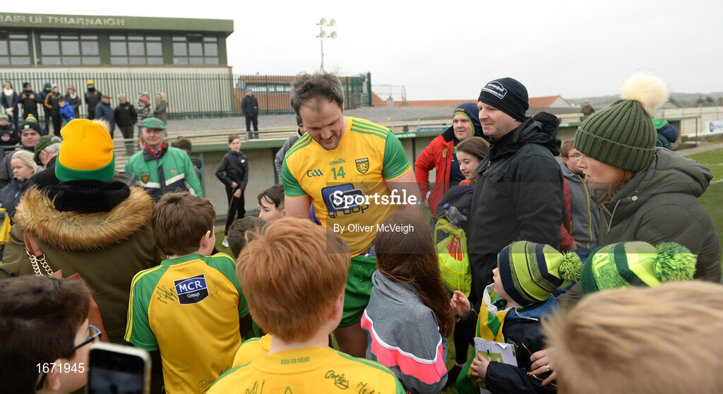 24 March 2019; Michael Murphy of Donegal busy signing autographs after the Allianz Football League Division 2 Round 7 match between Donegal and Kildare at Fr. Tierney Park in Ballyshannon, Donegal. Photo by Oliver McVeigh/Sportsfile