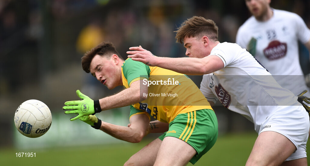 24 March 2019; Niall O’Donnell of Donegal in action against Adam Tyrell of Kildare during the Allianz Football League Division 2 Round 7 match between Donegal and Kildare at Fr. Tierney Park in Ballyshannon, Donegal. Photo by Oliver McVeigh/Sportsfile