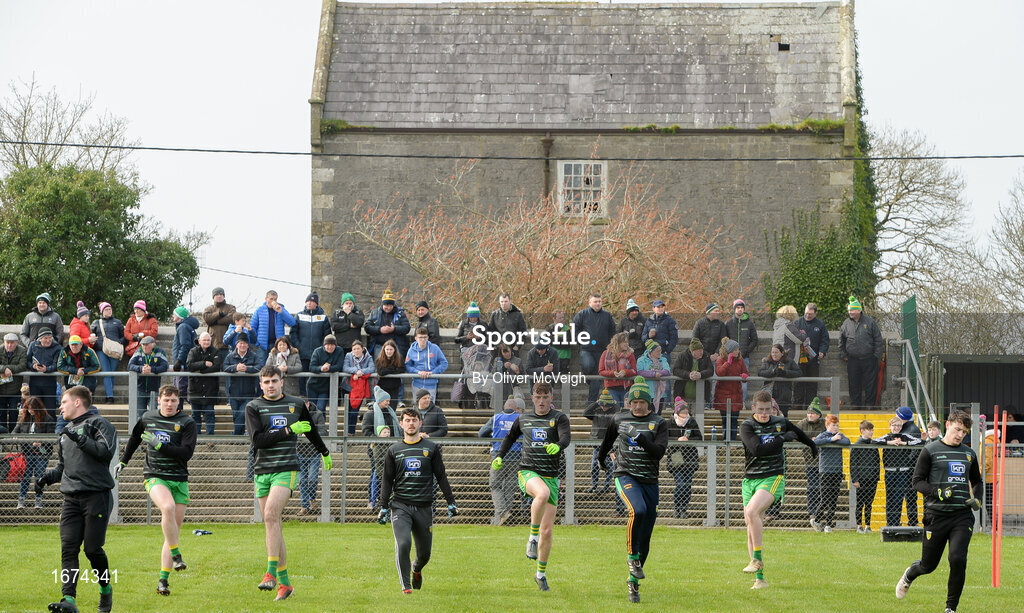 24 March 2019; The Donegal players warm up before the Allianz Football League Division 2 Round 7 match between Donegal and Kildare at Fr. Tierney Park in Ballyshannon, Donegal. Photo by Oliver McVeigh/Sportsfile