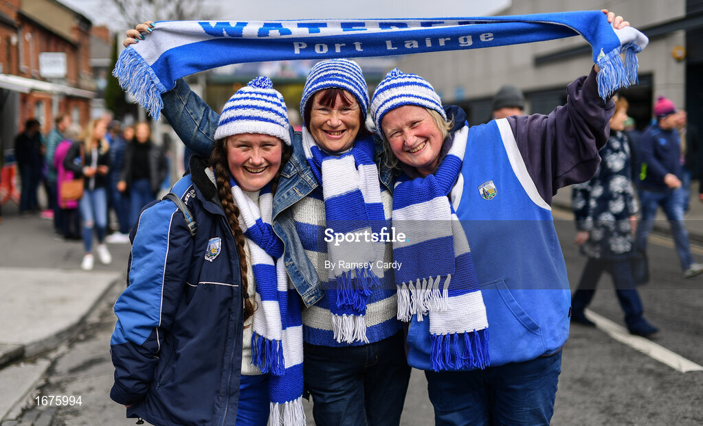 31 March 2019; Waterford supporters, from left, Shelly, Bridget and Aoife Phelan, from Waterford city, ahead of the Allianz Hurling League Division 1 Final match between Limerick and Waterford at Croke Park in Dublin. Photo by Ramsey Cardy/Sportsfile