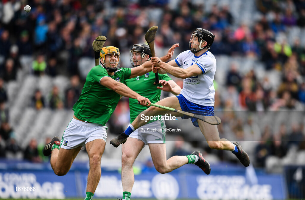 31 March 2019; Jamie Barron of Waterford in action against Dan Morrissey, left, and Declan Hannon of Limerick during the Allianz Hurling League Division 1 Final match between Limerick and Waterford at Croke Park in Dublin. Photo by Stephen McCarthy/Sportsfile