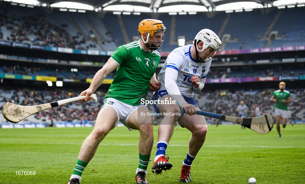 31 March 2019; Shane Bennett of Waterford in action against Richie English of Limerick during the Allianz Hurling League Division 1 Final match between Limerick and Waterford at Croke Park in Dublin. Photo by Stephen McCarthy/Sportsfile