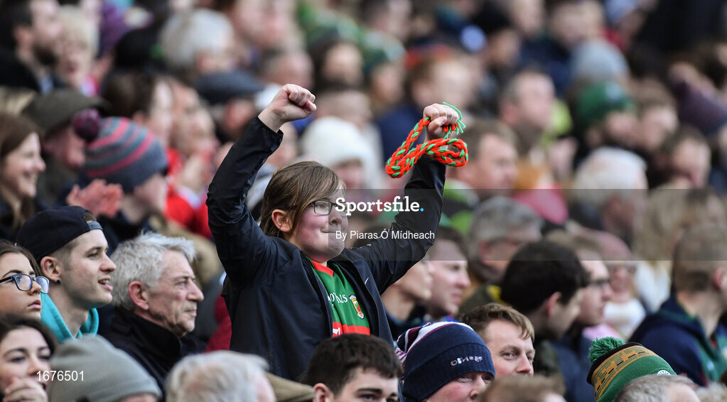 31 March 2019; A Mayo supporter during the Allianz Football League Division 1 Final match between Kerry and Mayo at Croke Park in Dublin. Photo by Piaras Ó Mídheach/Sportsfile