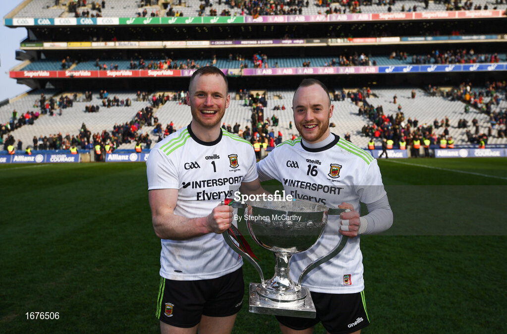 31 March 2019; Mayo goalkeepers Rob Hennelly, left, and Micheál Schlingermann of Mayo following the Allianz Football League Division 1 Final match between Kerry and Mayo at Croke Park in Dublin. Photo by Stephen McCarthy/Sportsfile