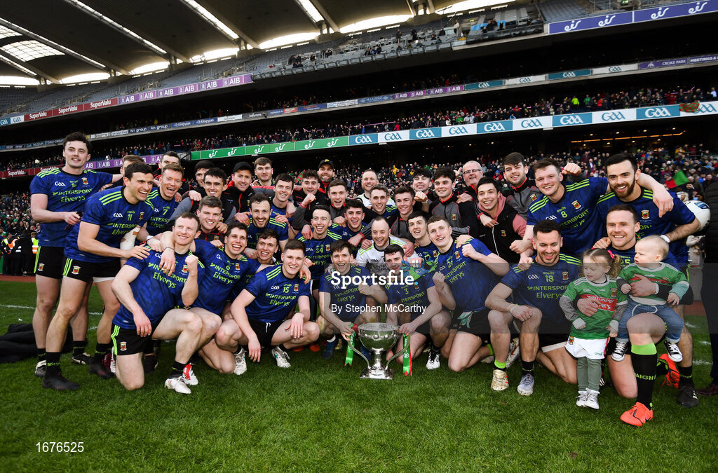31 March 2019; Mayo players celebrate following the Allianz Football League Division 1 Final match between Kerry and Mayo at Croke Park in Dublin. Photo by Stephen McCarthy/Sportsfile