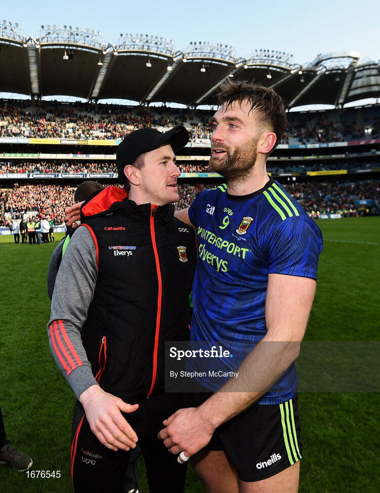 31 March 2019; Aidan O'Shea, right, and Cillian O'Connor of Mayo following the Allianz Football League Division 1 Final match between Kerry and Mayo at Croke Park in Dublin. Photo by Stephen McCarthy/Sportsfile