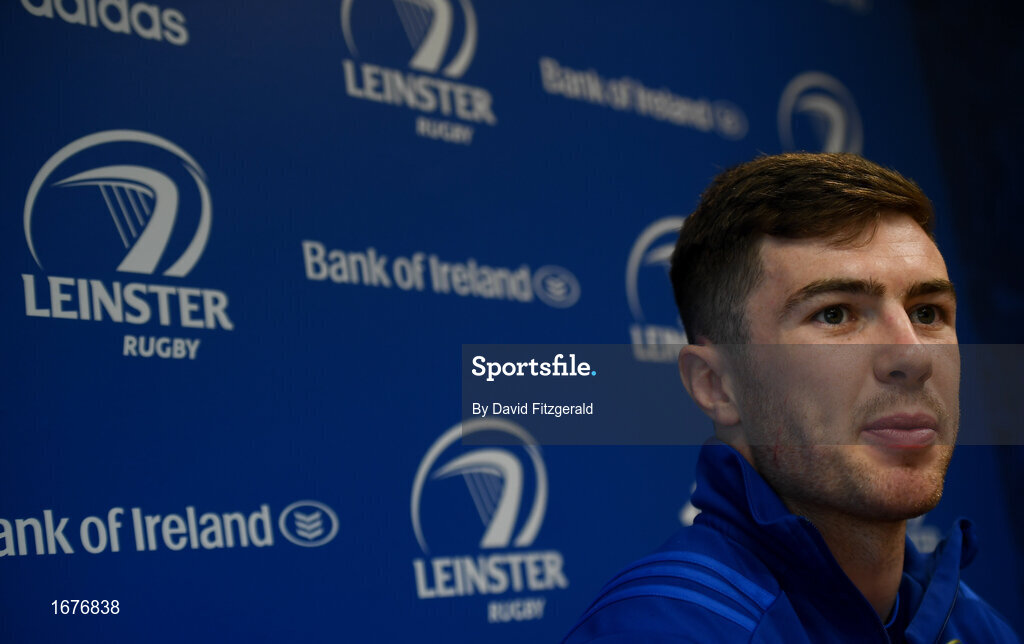 1 April 2019; Luke McGrath speaking during a Leinster Rugby press conference at Leinster Rugby Headquarters in UCD, Dublin. Photo by David Fitzgerald/Sportsfile
