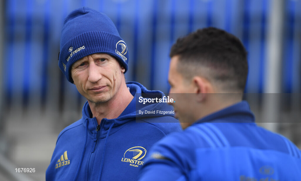 1 April 2019; Head coach Leo Cullen, left, with Noel Reid during Leinster squad training at Energia Park in Donnybrook, Dublin. Photo by David Fitzgerald/Sportsfile