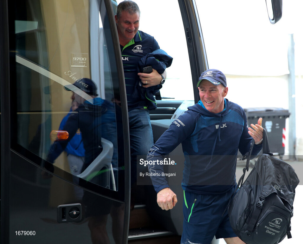 6 April 2019; Connacht Rugby head coach Andy Friend, right, and team manager Tim Allnutt arrive at Stadio Lanfranchi prior to the Guinness Pro14 Round 19 game between Zebre Rugby Club and Connacht Rugby at Stadio Lanfranchi in Parma, Italy. Photo by Roberto Bregani/Sportsfile