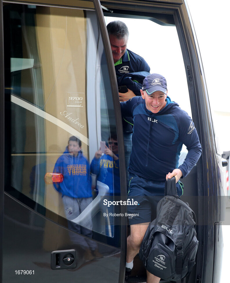 6 April 2019; Connacht Rugby head coach Andy Friend, right, and team manager Tim Allnutt arrive at Stadio Lanfranchi prior to the Guinness Pro14 Round 19 game between Zebre Rugby Club and Connacht Rugby at Stadio Lanfranchi in Parma, Italy. Photo by Roberto Bregani/Sportsfile