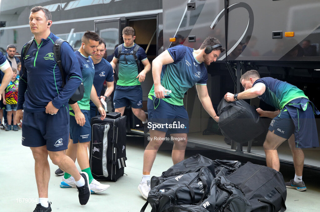 6 April 2019; Connacht Rugby players arrive at Stadio Lanfranchi prior to the Guinness Pro14 Round 19 game between Zebre Rugby Club and Connacht Rugby at Stadio Lanfranchi in Parma, Italy. Photo by Roberto Bregani/Sportsfile